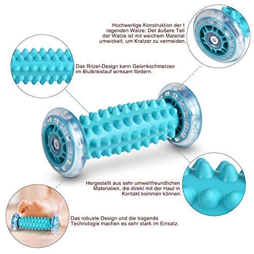 Flexible Spitzen: Dieses aktualisierte Fußrollenset ist mit flexiblen Spitzen und kreisförmigen Wulsten ausgestattet, die nicht nur eine Akupressur-Tiefengewebemassage durchführen können, um müde Füße zu trösten oder die Bogenschmerzentlastung bei einer Plantarfasziitis zu lindern, sondern auch für einige empfindliche Füße freundlich ist.
