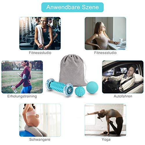 Geeignet für die Entspannung der Körpermuskulatur: Das Massagekit kann beim Yoga und Fitnesstraining helfen, die Schmerzen in allen Muskelpartien des Körpers sofort lindern, die Flexibilität erhöhen und kurzfristige Schmerzen vermeiden. Während des Heilungsprozesses kann dies den Blutfluss erhöhen und Sauerstoff und Nährstoffe in die Muskeln bringen, um eine schnellere Erholung zu fördern.