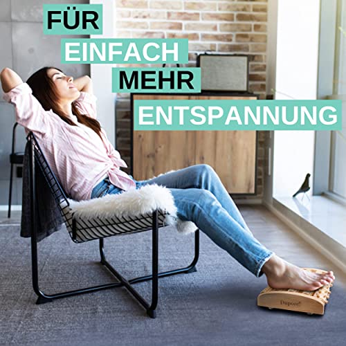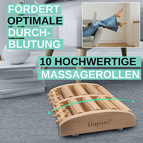 DUPORE® PREMIUM Fußmassageroller Holz+2x GRATIS Fingermassageringe – Fussmassageroller Holz Für Eine Wohltuende Fußmassage zur Effektiven Vorbeugung & Linderung Von Stress, Schmerzen & Fersensporn