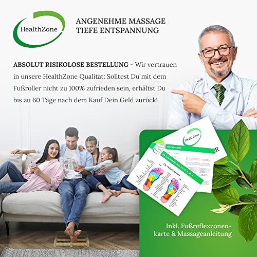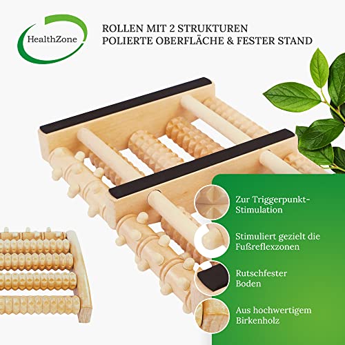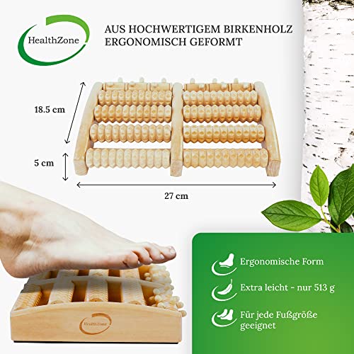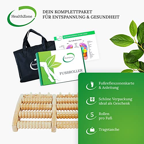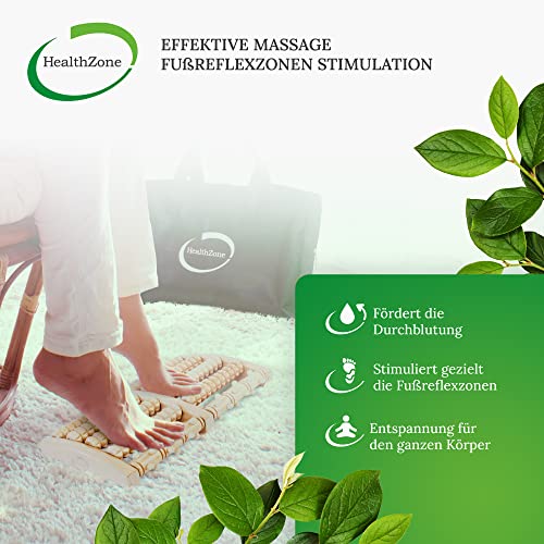 HealthZone Fußmassageroller aus Birkenholz – zur Fussmassage – Fußreflexzonenmassage Gerät – Fußroller mit Tasche & Anleitung – Fussmassagegerät Holz