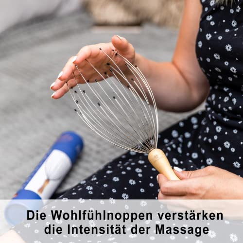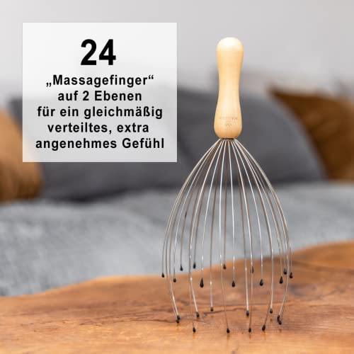 MAILEDA Kopfmassage ,,Spinne“ I 24 ,,Finger” I ergonomischer Holzgriff I Kopfkrauler I Massagegerät I Hochwertige Qualität I Wohlbefinden für den Kopf