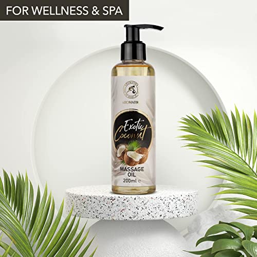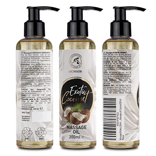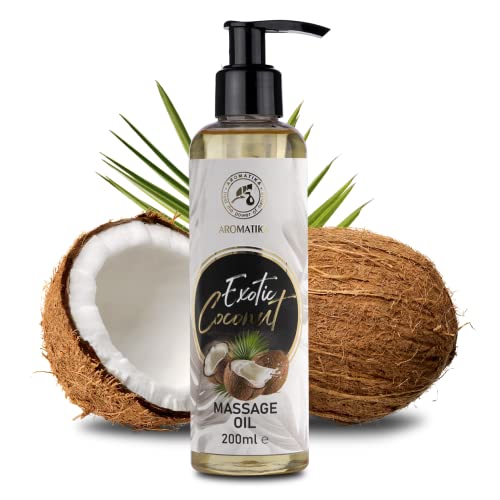 Massageöl Kokos 200ml – Körperöl mit Kokosöl und Mandelöl – Traubenkernöl – Pfirsichkernöl und Jojobaöl – Kokosduft Massage Öl für alle Hauttypen – Entspannungsöl