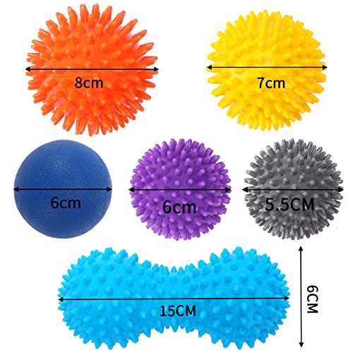 Specification: 6-teiliger Satz Igel Massage Ball Faszien Ball mit kleinen harten Igel Ball, geeignet für Druckreflextherapie und Trigger Punkt Massage, verwendet für Muskelmassage von Fuß, Rücken, Bein und Hand