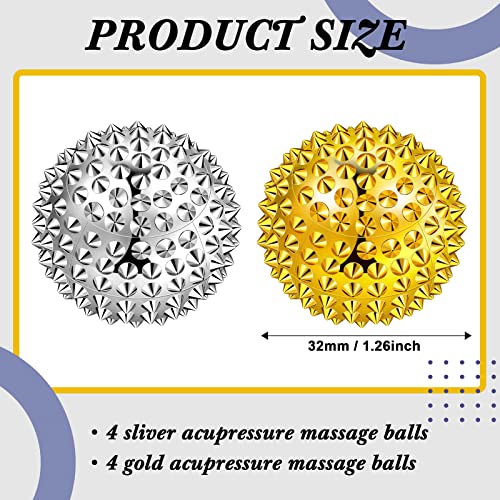Specification: 8 Stück Magnetische Massageball Igelball Hand Akupunkturball Klein Akupunktur Massage Kugeln Physiotherapie Massagegerät Yoga Ball zum Stressabbau Massage (Silber, Gold, 32 mm Durchmesser)