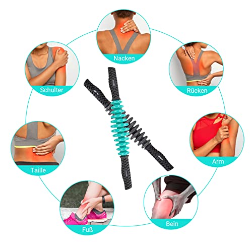 Massageroller mit Griff. 43cm Massage Roller Stick. Massagerolle Körper Roller Massage Stab für Beine Nacken Rücken Schulter. Massage von Muskeln Faszien Tiefengewebe Triggerpunkten (Grün)