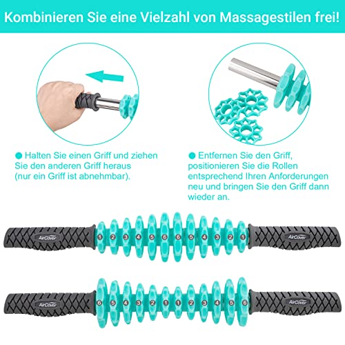 💪 【Verbessertes abnehmbares Design】 Die 12 unabhängigen konkav-konvexen Rollen sind vom Metallkern abnehmbar. Je nach Ihren Bedürfnissen und Vorlieben können Sie die Rollen neu positionieren, sodass Sie einen anders geformten Stab erstellen und eine Vielzahl von Massagestilen kombinieren können. Außerdem gibt es kleine Zwischenräume zwischen den Walzen, wodurch verhindert wird, dass sich Körperhaare zwischen den Walzen verfangen.