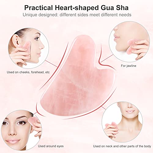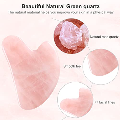 Gua Sha Rosenquarz Stein Jade Guasha Set Face Schaber Massage Facial Roller Gesichtsroller Massagesteine für Gesicht Augen Anti-Aging Nacken Massagewerkzeug Geschenkset (Rosa)
