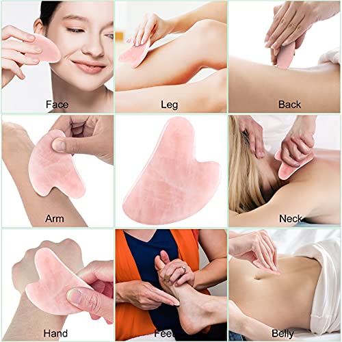 【Erstaunliche physikalische Effekte】 Gua Sha Rosenquarz enthält Selen, Zink, Nickel, Kobalt, Mangan, Magnesium und mehr als 30 Arten von Spurenelementen, die gut für Ihren Körper sind. Es kann an Hals, Gesicht, Rücken, Kinn, Hand, Armen, Taille, Kopfhaut und Füßen verwendet werden. Es hilft nicht nur, die Hautfarbe zu verbessern, sondern auch Falten, Schwellungen, Schwellungen, dunkle Augenränder, Tränensäcke zu reduzieren.