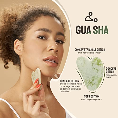 Specification: Jade Roller & Gua Sha Set, Gesichtsroller Massagegerät 100% natürliche Jade für Gesicht, Augen, Hals zur Hautpflege, Schönheit und Entspannung der Körpermuskulatur mit intelligenter APP