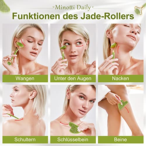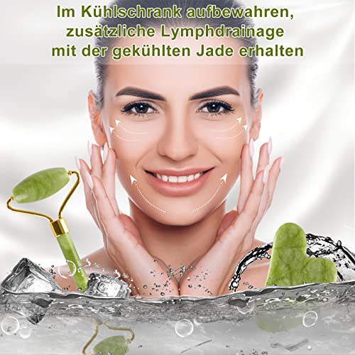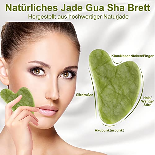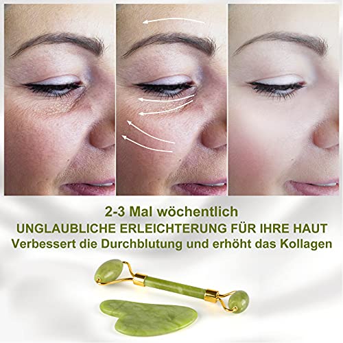 Jade Roller und Gua Sha Stein, Gesichts-Wellness & Anti Aging Tool Set. Gua Sha Gesichtsroller Stein aus natürlicher Jade, Jade-Roller für Gesicht und Körper, Für Hautstraffung von Gesicht und Hals