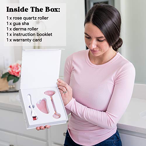 Specification: Rosenquarz-Gesichtsroller, Mikronadel-Dermaroller und Gua Sha-Schaber für Ihre Hautpflege| 3-in-1 Schönheits-Gesichtswalze | Stein Jade-Roller für Gesicht, Dermaroller-System, Gesichtsmassagegerät