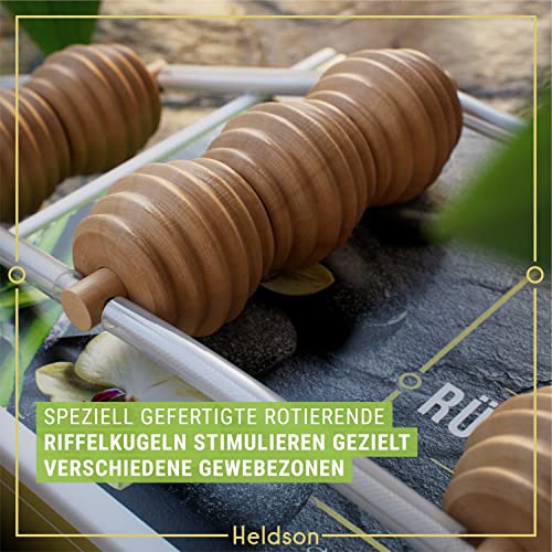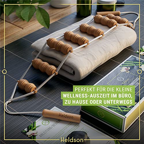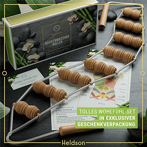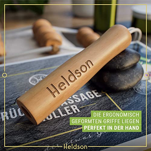 HELDSON® Premium Rückenroller Holz inkl.deutscher Anleitung und Karte Für Rückenreflexzonen – Massagegerät Holz – Massage Rückenkratzer Massageroller Nacken Schulter Rücken