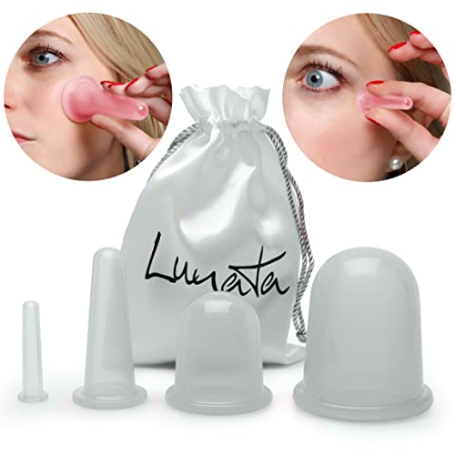 Lunata 4 Set Anti Cellulite Massage Cup, Saugglocke, Schröpfglas gegen Orangenhaut, Vakuum Massagegerät, Silikon Cups, Saugglocke, Schröpfgläser, Farbe: Weiß