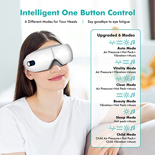 🌈【Verbesserte 6 Modi & Ein-Tasten-Steuerung】 Dieses Augenmassagegerät ist mit 6 Modi ausgestattet (Auto-Modus, Vitalitätsmodus, Clear-Modus, Schönheitsmodus, Schlafmodus, Kindermodus), die je nach persönlicher Liebe frei eingestellt werden können. Mit einem Ein-Tasten-Steuermoduszyklus, können Sie einfach zwischen verschiedenen Massagemodi wechseln, um die Massageintensität Ihren Bedürfnissen anzupassen, ohne komplizierte Bedienung.