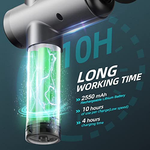 💪【Lange Arbeitszeit und hochauflösender digitaler Bildschirm】-Das Muskelmassagepistole ist mit 2550mAh hochwertigen wiederaufladbaren Lithium-Ionen-Akku ausgestattet. Es kann innerhalb von 4-5 Stunden schnell aufgeladen werden, um 10 Stunden Arbeitszeit (niedrige Geschwindigkeit) zu unterstützen. Die handmassagegerät mit LED-Touchscreen-Display zeigt die Geschwindigkeitsstufe und die Leistungsanzeige an, so dass Sie sich keine Sorgen über Stromausfälle machen müssen.