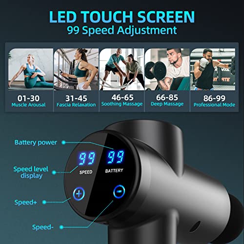 Specification: Massagepistole Elektrische Massage Gun 99 Geschwindigkeiten 8 Massageköpfe tragbares Tiefengewebe-Massagegerät 2550 mAh mit LED-Anzeige-Touchscreen für Nacken, Rücken, Schulter Schmerzlinderung