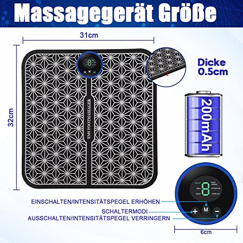 ✅【Verstärkt EMS Fussmassagegerät】 Die Dicke des neu Fußmassagegerät wird um 4 mm erhöht, die Länge und Breite um 3 cm erhöht und Niederfrequente Impulse werden verstärkt, Durchblutung stärken, stimuliert schnell Ihren Akupunkturpunkt, um Ihre Füße zu massieren, Muskeln zu entspannen, Schmerzen und Müdigkeit zu lindern und den Schlaf zu verbessern.