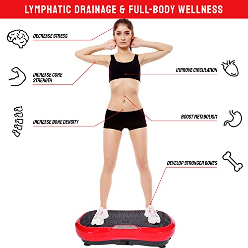 Vibrationsplatte mit Ultra leiser Motor | 3 Trainingsprogramme + 120 Stufen | Fernsteuerung | inkl. Trainingsbänder | Extra Groß Slim und rutschfest | Ganzkörpertraining, Fett verlieren