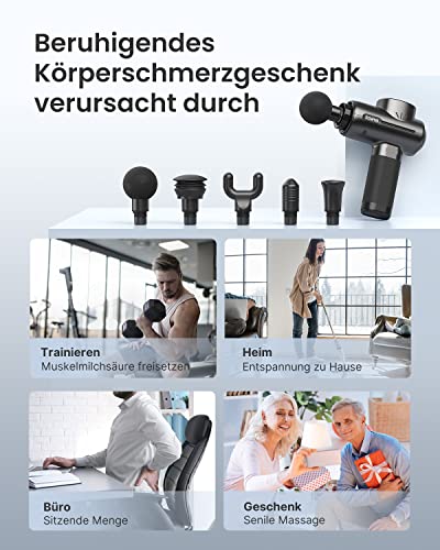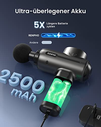 Massagepistole Massage Gun, RENPHO Massagepistole bis zu 3200U/min Massage Gun Massagegerät mit 2500mAh Akku und USB C Ladeanschluss zur Linderung von Muskelschmerzen, Schwarz