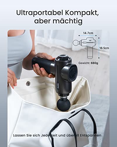 0,68 kg SUPER LEICHTES UND ERGONOMISCHES DESIGN: Die Renpho Massagepistole wiegt nur 0,68 kg, ist viel leichter als andere Massagepistolen derselben Größe und macht es so einfach, während der gesamten Massage zu tragen.