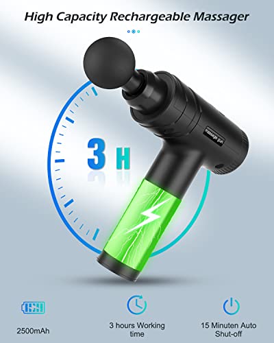 🏋️♀️【Schnelles Aufladen & lange Akkulebensdauer】Das Massagepistole Massagegerät ist mit einem 1A/12,6V Adapter ausgestattet, was bedeutet, dass es schnell und einfach aufgeladen werden kann. Der hochwertige Akku mit einer Kapazität von 2500 mAh bedeutet, dass die Muskelmassagepistole 3 Stunden lang kontinuierlich betrieben werden kann. Das Gerät verwendet einen neuen intelligenten Chip, der das Gerät nach 15 Minuten Dauerbetrieb automatisch abschaltet, um eine Überhitzung zu vermeiden.