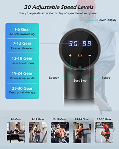 Specification: Massagepistole Massage Gun, Uplayteck Muskel Massagegerät mit 30 Geschwindigkeiten, 8 Massageköpfen, 40DB Superleise, LED Anzeige Touchscreen Massage Pistole Faszienpistole für Nacken Rücken Schulter
