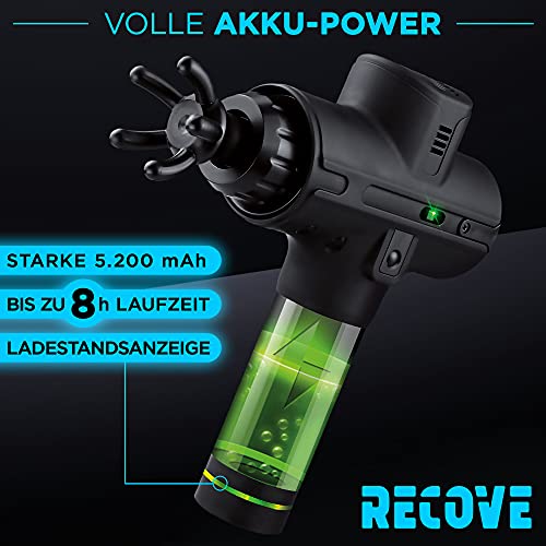 🔋 𝐄𝐗𝐙𝐄𝐋𝐋𝐄𝐍𝐓𝐄 𝐋𝐀𝐔𝐅𝐙𝐄𝐈𝐓 – Die Massagegun mit LED Touch Display kommt mit einer unglaublich hohen Laufzeit von 6-8 Stunden bei einem 5200mAH Akku. Das Stoßwellentherapie Gerät ist super geräuscharm und kann überallhin mitgenommen werden!