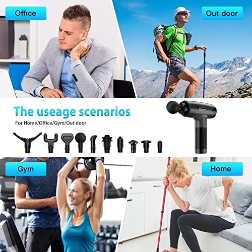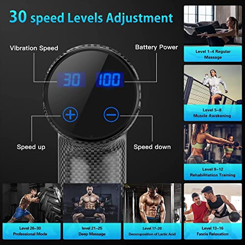 Specification: MQTDIK Massagepistole Deep Tissue für Sportler, Muskelperkussionsmassagegeräte für Nackenrücken mit 10 Köpfen, 30 einstellbare Geschwindigkeiten Tragbares elektrisches Handmassagegerät, Carbon
