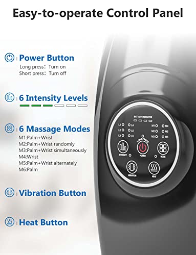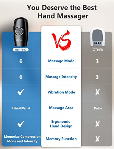 Specification: RENPHO Wireless Handmassagegerät mit Wärme, Hand Massagegerät Elektrisch mit 6 Stufen der Luftkompression und Intensität Kompression für Handfläche Handgelenk Finger Taubheit Müdigkeit Wundsein Relief