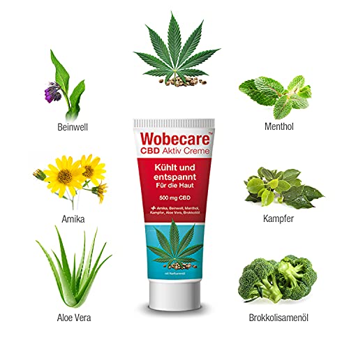 Specification: Wobecare® CBD Aktiv Creme | Kühlend und lindernd für die Haut | Cannabidiol | Arnika | Beinwell | 100 ml Tube