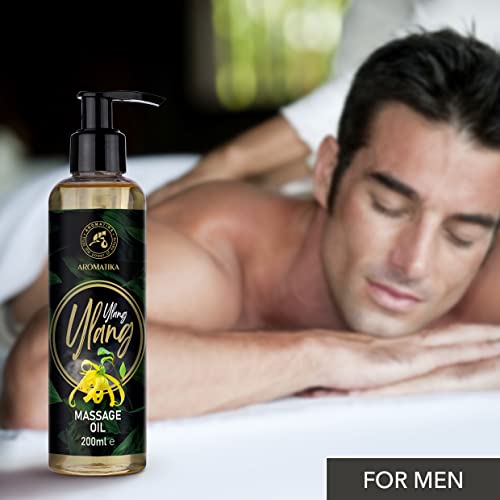 Massageöl Ylang-Ylang 200ml – Körperöl mit Ylang-Ylang Öl – Mandelöl und Traubenkernöl für Sinnliche Massage – Körperpflege Öl für Alle Hauttypen – Entspannungöl – Massageöl für Partnermassage