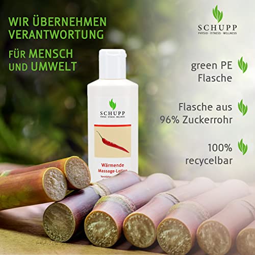 SCHUPP Wärmende Massage-Lotion, 200ml – Massage-Creme für gute Gleitfähigkeit – feuchtigkeitsspendende Lotion bei trockener & rissiger Haut – Made in Germany
