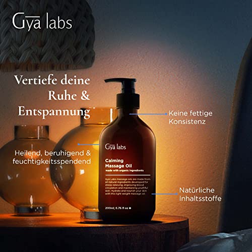 Gya Labs Beruhigendes Massageöl für Besseren Schlaf (200ml) – Hergestellt aus Lavendel, Petitgrain, Kamille, Süßorangen, Jojoba und Arganöl – Für Schlaf, Stress und Muskelschmerzen