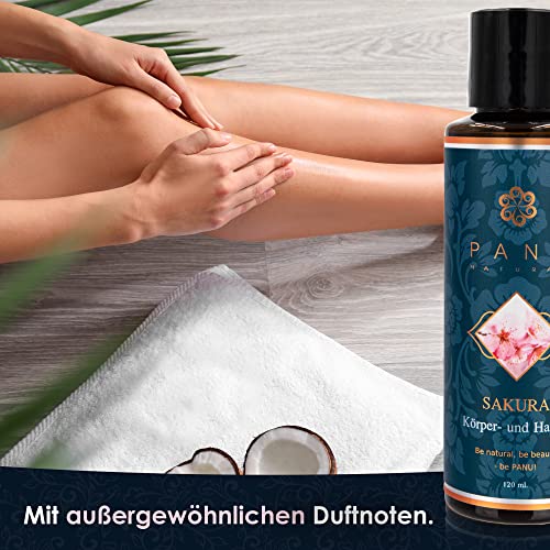 Panu Natural Massageöl Sakura – Pflegendes Körperöl zum Massieren – Hautöl mit feuchtigkeitsspendender Wirkung – Premium Body Oil – Veganes Massage Öl zum Entspannen