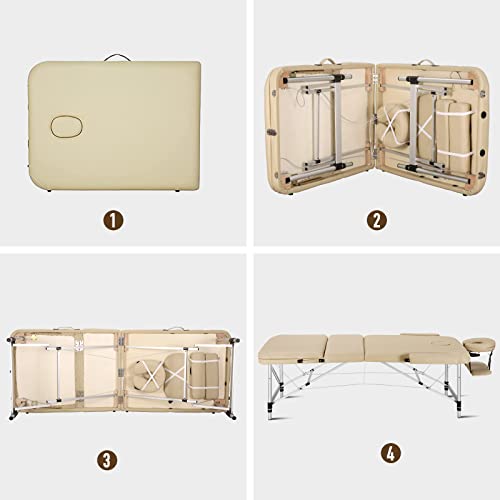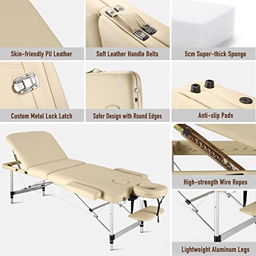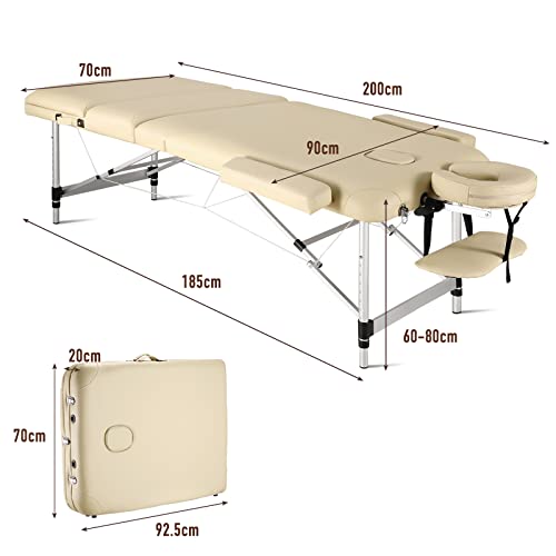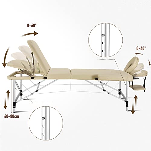 Mobile Professionelle Massageliege Massagetisch Massagebett Massagestuhl mit 3 Zonen höhenverstellbaren mit Aluminiumfüßen Ergonomische KopfstützeTragetasche…
