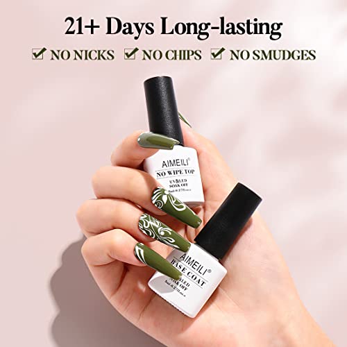 AIMEILI UV LED Gellack Gel Nagellack Base & No Wipe Top Coat Unterlack & Überlack Set Gel Polish 2×8ml