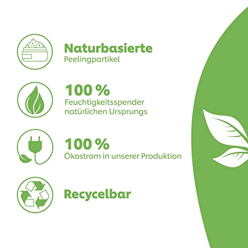 Das Körperpeeling entfernt schonend abgestorbene und trockene Hautzellen und spendet Feuchtigkeit für geschmeidige Haut