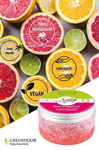 GREENDOOR Körperpeeling Sugar Scrub Pink Grapefruit 230g, vegan, Zucker Peeling ohne Mikroplastik, natürliches Duschpeeling, Naturkosmetik für Damen und Männer, Natur Body Scrub