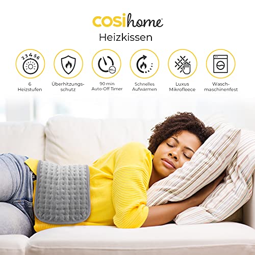 Cosi Home Heizkissen 60 x 30 cm mit Mikrofleece Bezug – Extra großes, maschinenwaschbares elektrisches Wärmekissen mit Abschaltautomatik & schneller Heiztechnologie – für Wärme und Entspannung – Grau