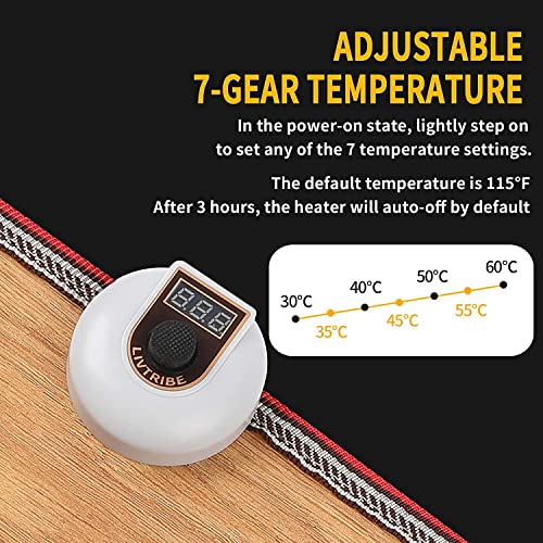 【EINFACHE BEDIENUNG】 Fußschalter wünschen Temperaturanzeige, keine Notwendigkeit, sich zu bücken. Nur Schritt und länger als 2 Sekunden gedrückt halten, um ein- oder auszuschalten. Mit unserem einzigartigen Temperaturregler können Sie die Temperatur zwischen 5 ℃ und 60 ℃ alle 5 ℃ frei wählen. Treten Sie im eingeschalteten Zustand leicht ein, um eine der 7 Temperaturen einzustellen.