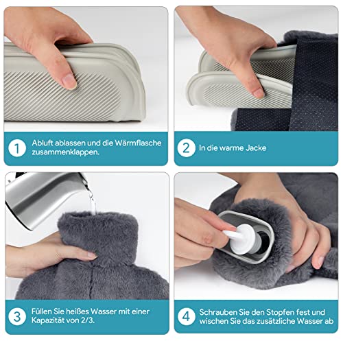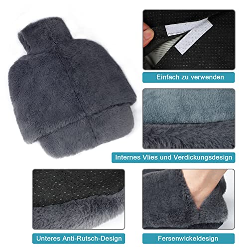 Specification: Tgkoddo Fußwärmer Ohne Strom, 2L Groß Wärmflasche füße, 2 in 1 Fußwärmflasche für Damen/Herren/Erwachsene, Super Weich und Warm Fußheizung Pads für die Kalte Füße im Winter (Grau,36x30cm)