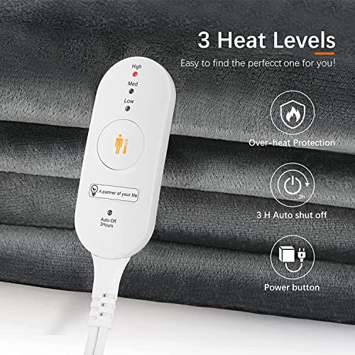 Heizdecke, 180 x 130 cm Flanell-Heizdecke mit Abschaltautomatik, elektrische Heizdecke Wärmedecke, Timerfunktion, Überhitzungsschutz mit 3 Temperaturstufen, waschbar bis 30°C, Heimgebrauch