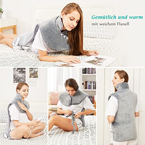 Mia&Coco Heizkissen für Rücken Schulter Nacken 60x100cm Wärmekissen mit Abschaltautomatik, Schnelle Erwärmung, mit Taillenriemen, Rückenwärmer Heizdecke 3 Heizstufen, Auto-OFF-Timer, Flanell Waschbar