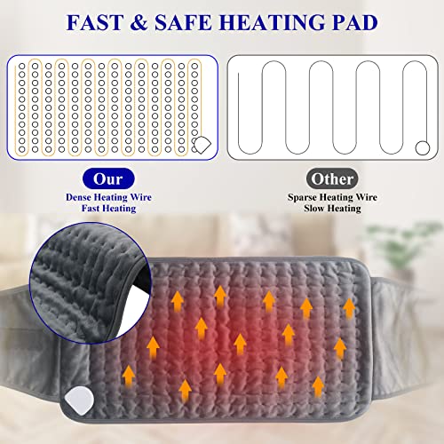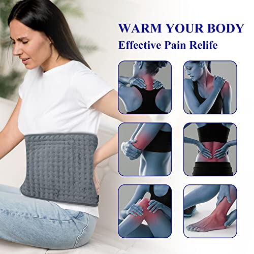 OneAmg Heizkissen mit Abschaltautomatik 6 Heizstufen( 4 Zeitbereichseinstellungen Superweiches Heizkissen mit Klettverschluss Waschbar Schnelle Erwärmung für Lindert Körperschmerzen Erkältung Grau