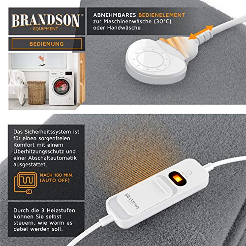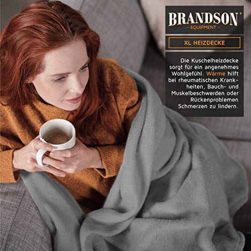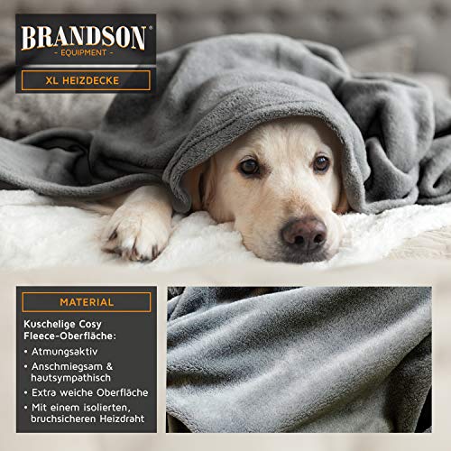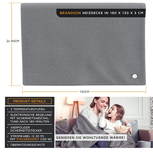 Brandson – XXL Heizdecke mit Abschaltautomatik 180x130cm – Überhitzungsschutz – Turbo Heat – 120 Watt – Digitale Steuereinheit mit Anzeige der Heizstufe – Kuscheldecke Wärmedecke
