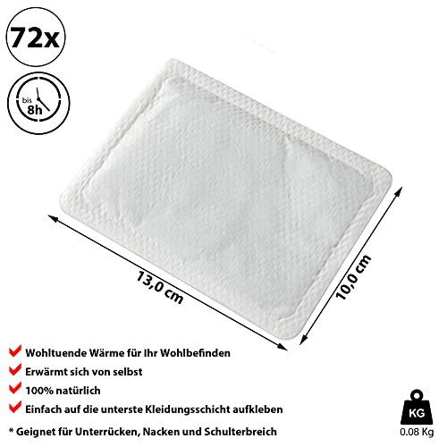 Wärmepad 72er Set | 13×10 cm 8 Stunden Wärme selbstklebend | Wärmepflaster Rückenwärmer Heizkissen (72er Set Wärmepads)