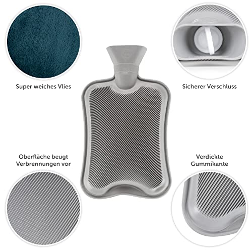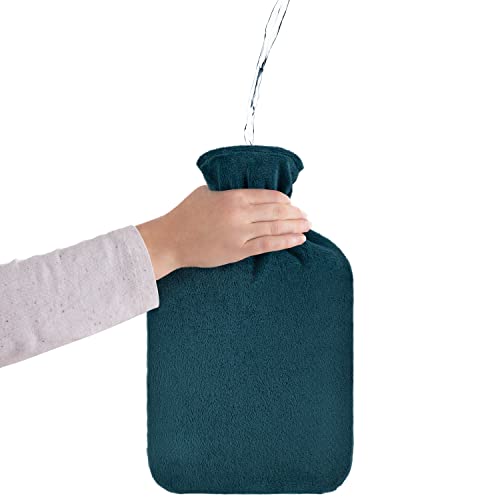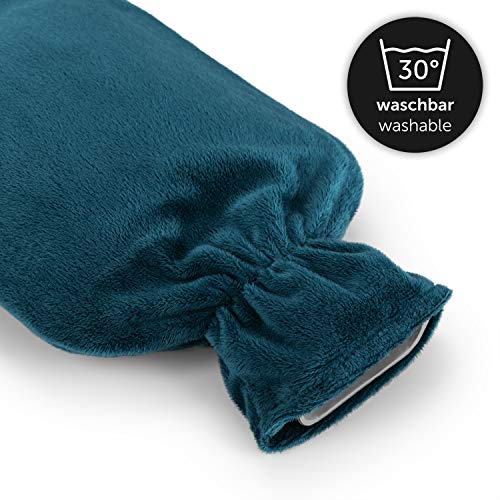 Blumtal Wärmflasche mit weichem Bezug – 1,8L Wärmeflasche, Bettflasche, Wärmflasche, petrol