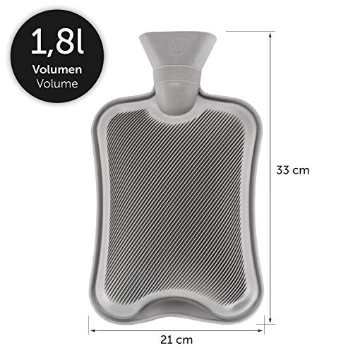 PERFEKTER WÄRMEGRAD – Diese Bettflasche für Erwachsene hat ein Fassungsvolumen von 1,8 Litern und kann so besonders lange Wärme abgeben. Durch den Wärmflaschenbezug der Kuschelwärmflasche wird die Hitze dabei ideal verteilt.