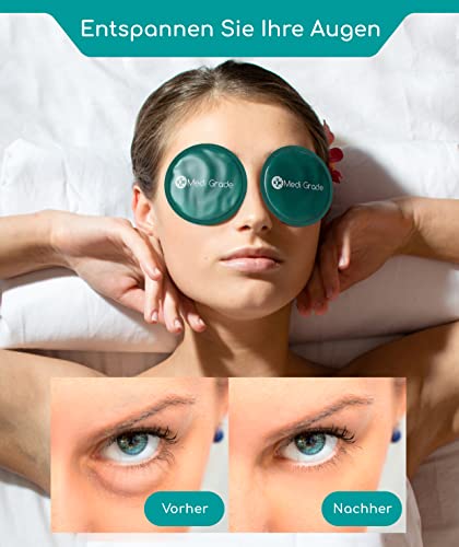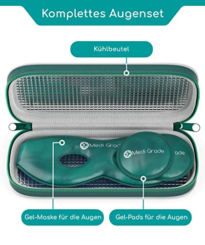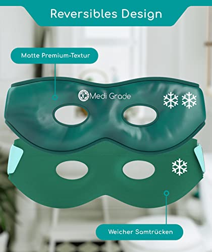 Medi Grade Augenmaske Kühlend – Gel Augenmaske Wiederverwendbar 2 x Augen Kühlpads – Kühlende Aufbewahrungstasche – Entspannung zu Hause oder Unterwegs Reversible Augenkühlmaske – Verstellbare Bänder